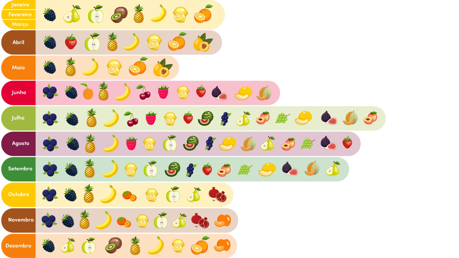 A fruta da época reforça o organismo em cada altura do ano. Nos meses mais frios em que há maior tendência para contrair gripes e constipações, consuma fruta rica em vitamina C, como é o caso da laranja e da tangerina. Já nos meses mais quentes, é importante consumir fruta com maior quantidade de água na sua composição, como melancia e melão.