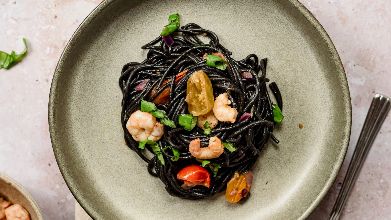 Esta receita de esparguete nero com camarão é ideal para quem procura um prato de marisco saboroso, rápido e fácil de preparar. Não desperdice as cascas do camarão: triture-as e aproveite-as para fazer um caldo. Passe o caldo por um coador e incorpore-o na cozedura da massa, intensificando o sabor do mar. Para um toque extra de sofisticação, envolva o esparguete num delicioso molho de açafrão, que adiciona um aroma irresistível ao prato.