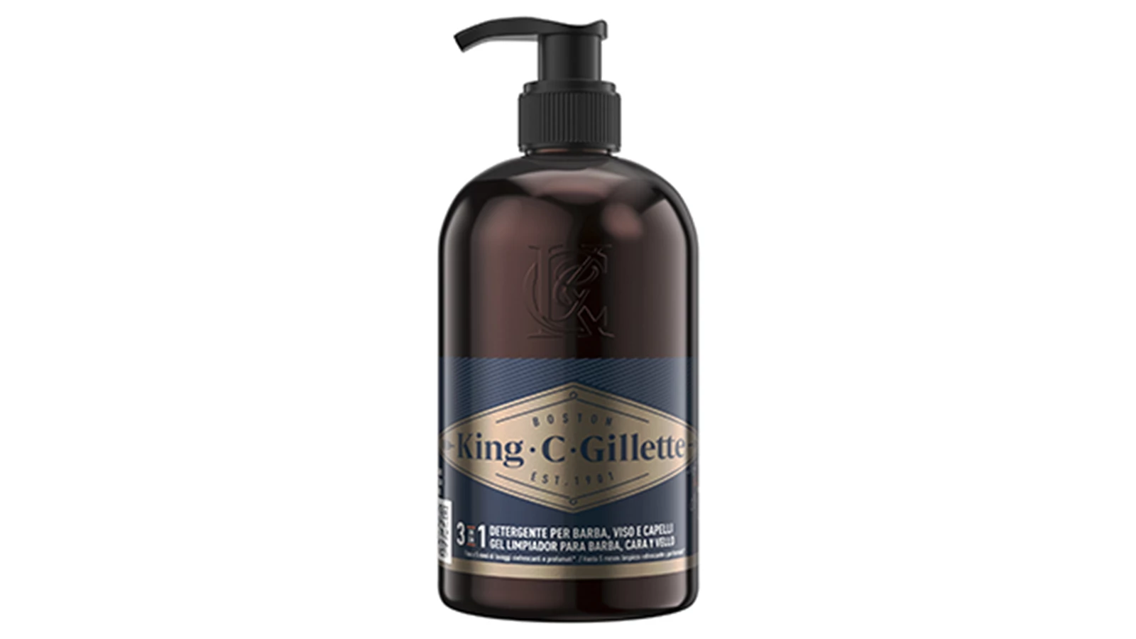 O Gel de Limpeza King C. 3 em 1 da Gillette é uma solução prática para o cuidado diário. É um 3 em 1, pois limpa a pele, a barba e o cabelo, deixando uma sensação de frescura e conforto. A sua fórmula contém água de coco, óleo de argão e óleo de abacate, que ajudam a manter a pele, a barba e o cabelo limpos e revitalizados todos os dias.