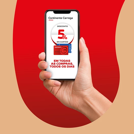 - Na eventualidade de beneficiar de outros descontos em Cartão Continente que atinjam ou ultrapassem os 5% ou 10% do total da compra (de acordo com o valor carregado), então esses descontos em Cartão prevalecerão sobre a Campanha do Continente Carrega;