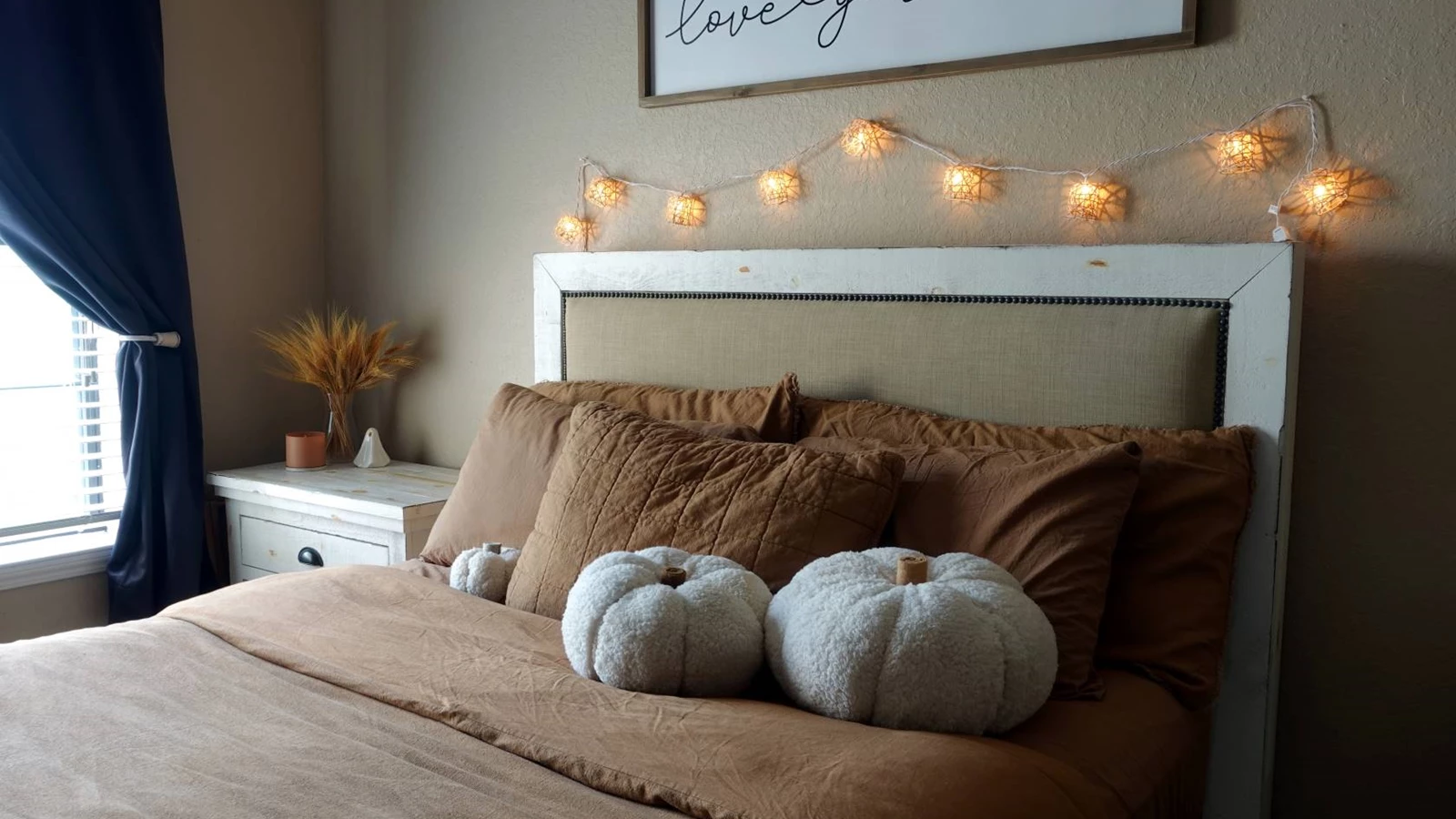 - Luzes: velas LED, autocolantes ou pequenas lanternas que iluminam abóboras e cantinhos da casa.
