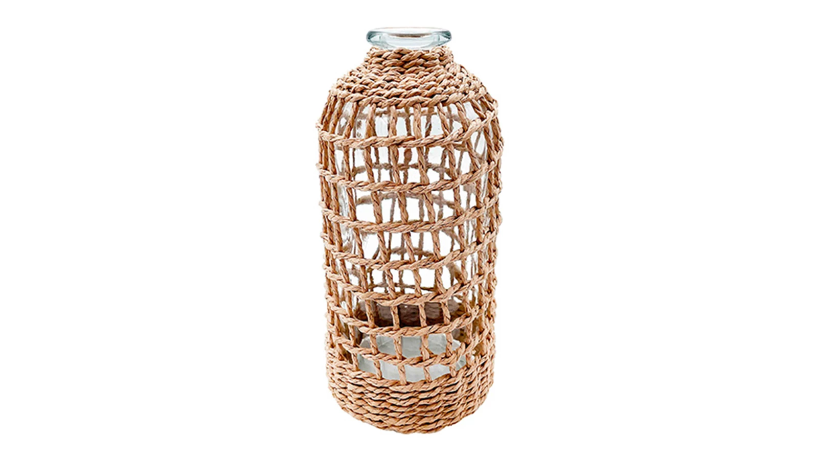 Por exemplo, uma jarra de vidro com detalhes em ráfia adiciona um charme rústico e acolhedor. Complete a decoração com plantas naturais, artificiais ou simplesmente com uma peça decorativa.