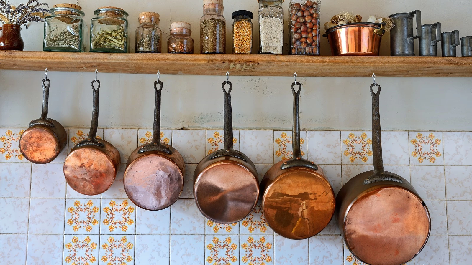 Em relação aos tachos e panelas, e de acordo com a disposição dos seus armários, eles devem ser colocados nas prateleiras, em gavetões ou pendurados em suportes próprios que poderão até servir para efeitos de decoração na cozinha. Para as tampas, se houver necessidade de separá-las, utilize organizadores próprios para este fim.