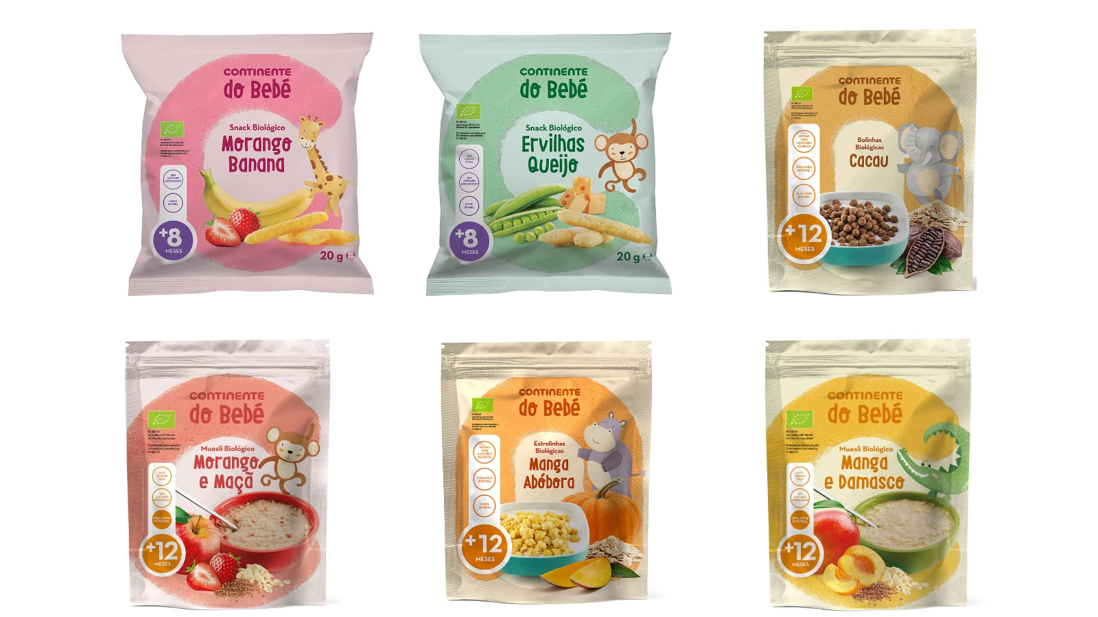 Sem corantes, aromas artificiais, gorduras hidrogenadas nem óleo de palma, os snacks Continente do Bebé são saborosos e saudáveis — ideais para levar na lancheira e complementar refeições.