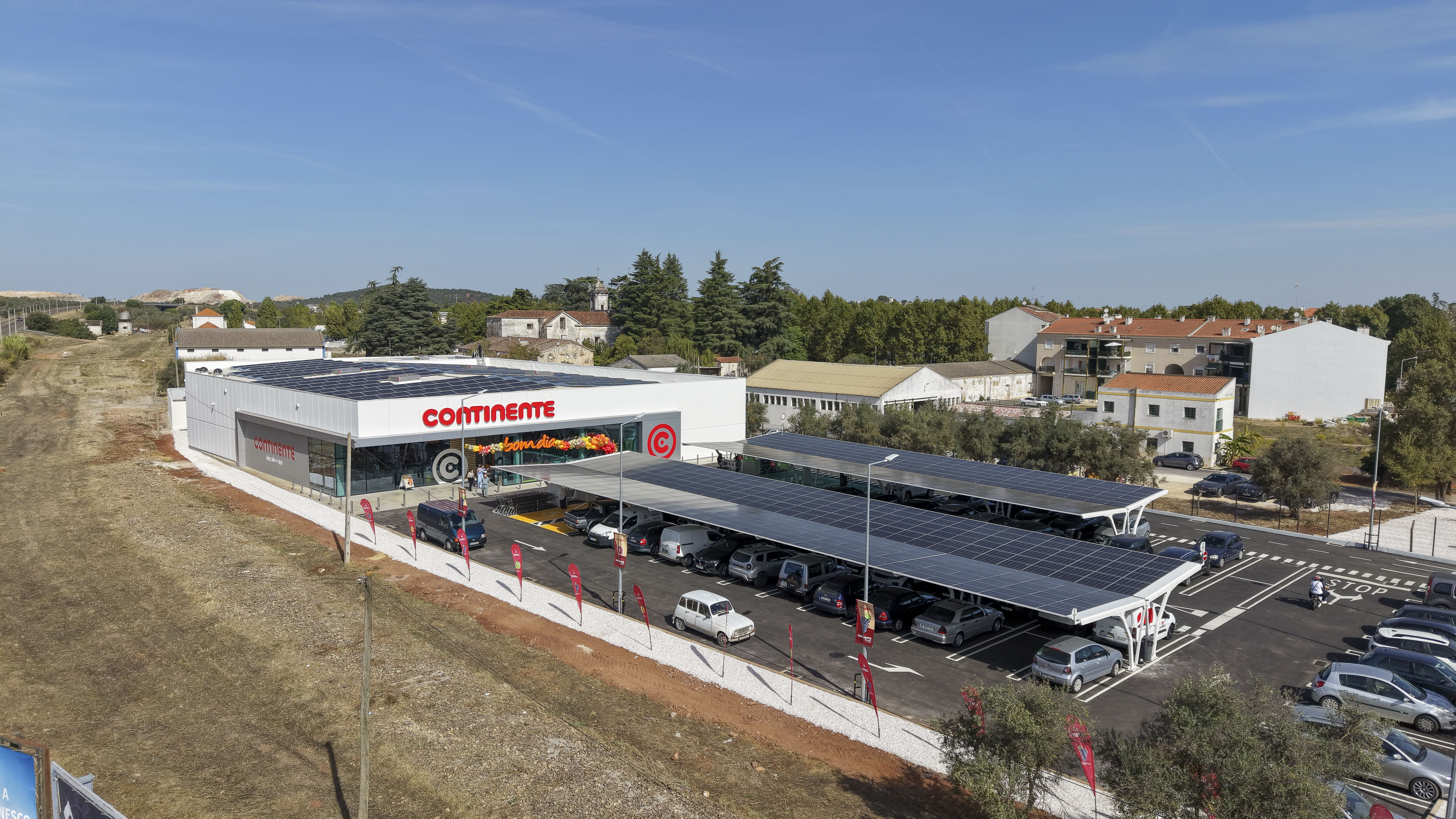 Esta loja Continente disponibiliza um parque de estacionamento a todos os seus clientes com lugares destinados a pessoas com mobilidade condicionada e lugares reservados para famílias.