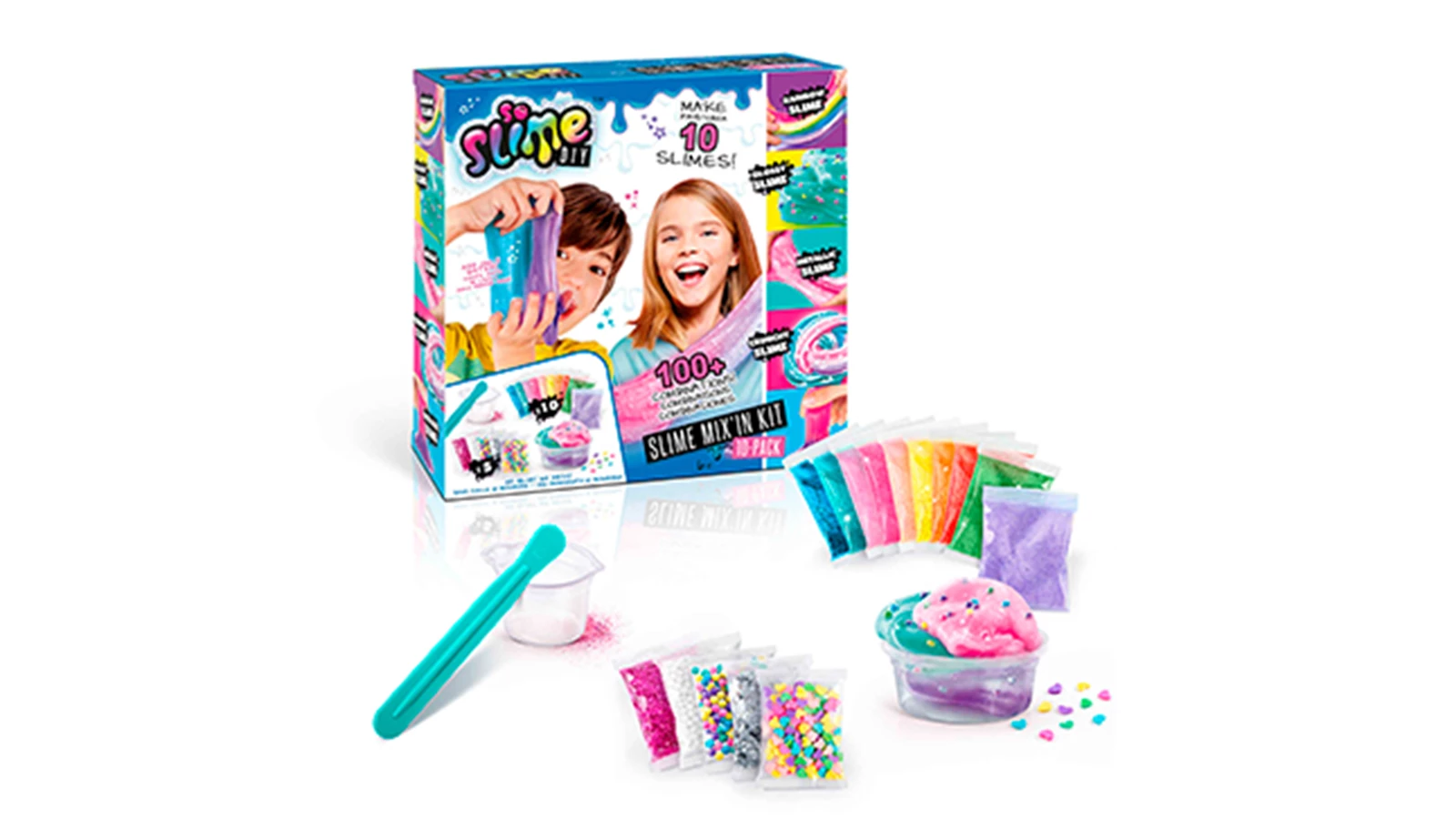 Para quem adora brincar com as mãos, o slime é a escolha perfeita. Este Pack 10 Slimes Mix'In traz tudo o que precisa: pó de slime, enfeites, taça para misturar, recipientes e uma espátula. Assim, a criança fica horas e horas entretida a fazer o seu próprio slime. Pode personalizar e experimentar diferentes combinações ou optar por uma versão simples. Espreite também este Misturador de Slime DIY.