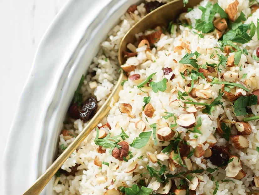 Retire o arroz do lume e adicione as sultanas e avelãs.
