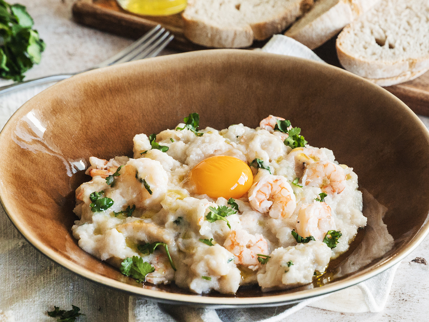 Espalhe os alhos laminados, regue com a bebida vegetal e o azeite, tempere com pimenta e polvilhe o pão ralado por cima das postas.