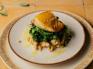 Bacalhau Confitado com Esmagada de Batata-Doce e Tomate Seco