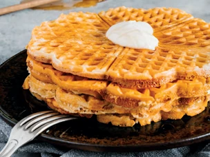 Numa tigela, misture a farinha de aveia com os flocos de aveia, o amido de milho, o bicarbonato de sódio, o fermento e a canela.