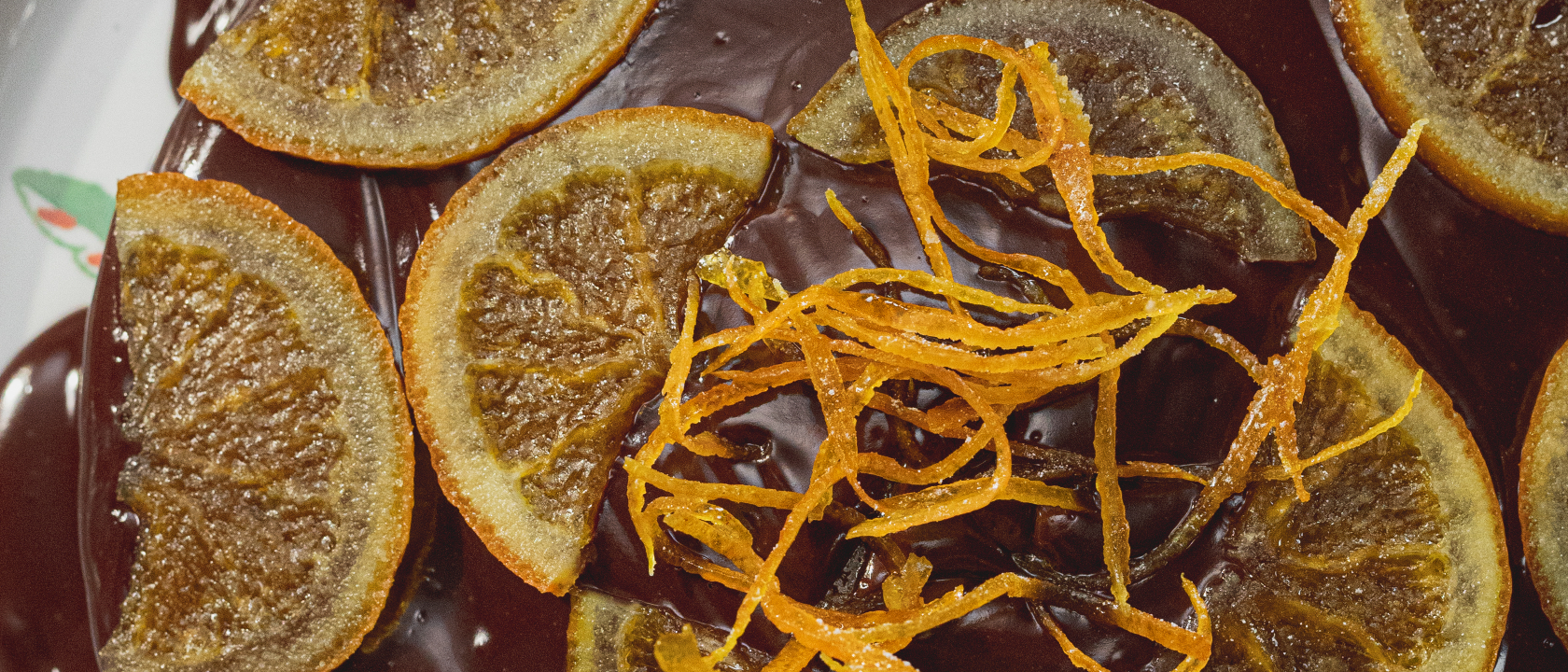 Servir o bolo de laranja e decorar com raspa de laranja.