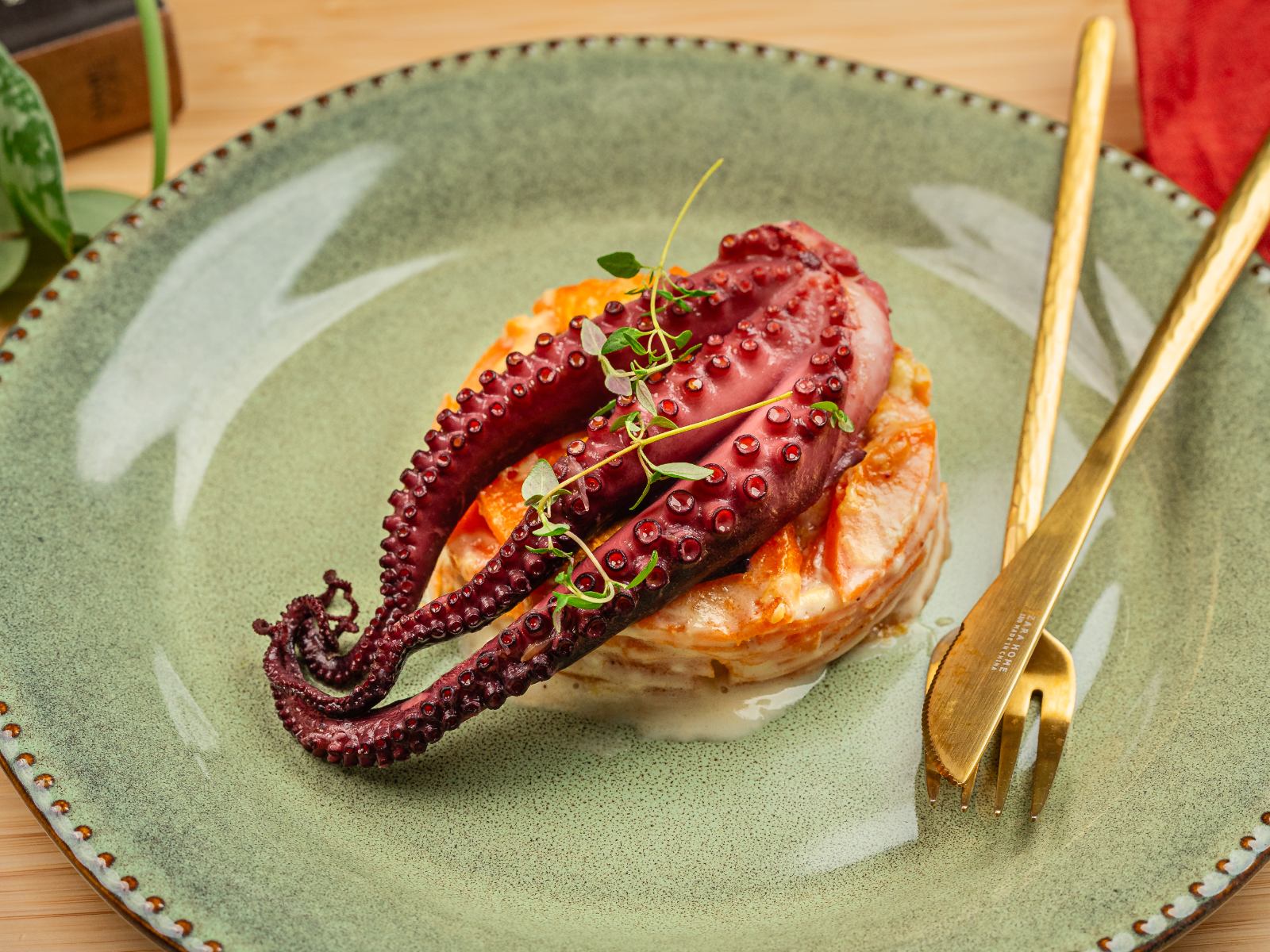 Junte o polvo cortado em pedaços, envolva cuidadosamente e deixe cozinhar em lume brando entre 20 e 30 minutos, para que o molho apure.