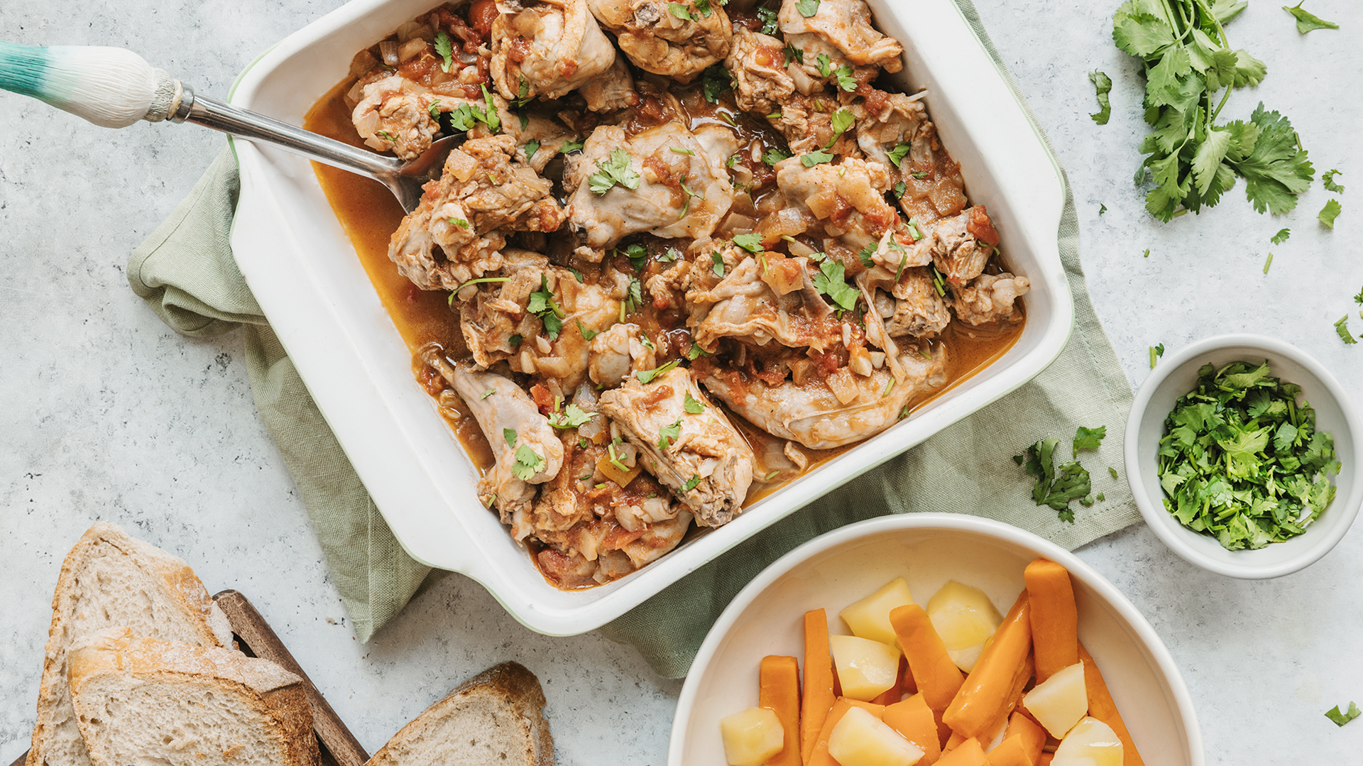 Sirva o puré de cenoura e o coelho estufado. Decore com tomilho a gosto.