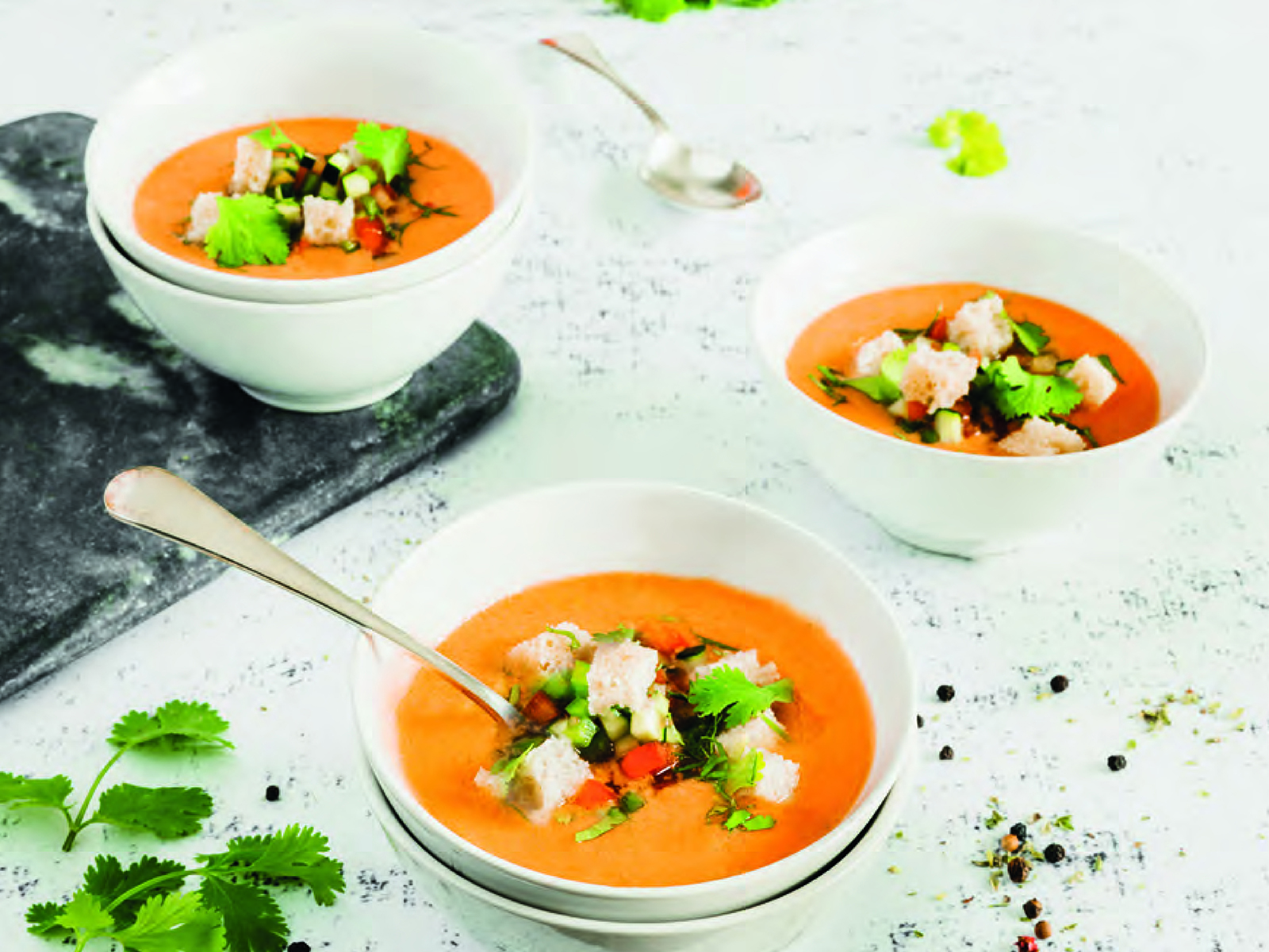 Retire do lume e sirva o creme de marisco com pão torrado. Decore com coentros picados.