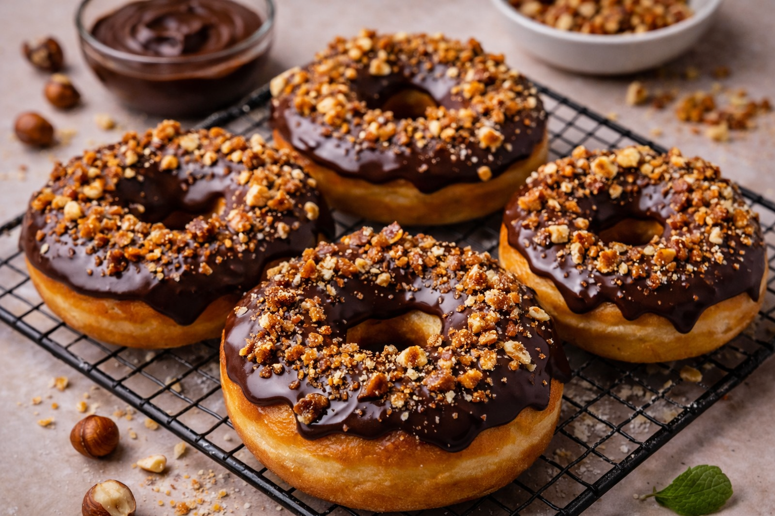 Polvilhe-os com o pralinê de avelã picado e deixe que arrefeçam por completo antes de servir.