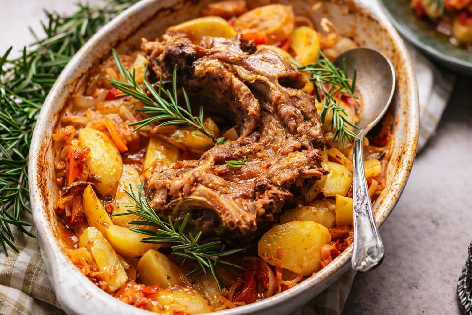 Corte as batatas descascadas em fatias e junte ao cabrito. Adicione mais vinho até cobrir tudo e deixe cozinhar durante 30 minutos.