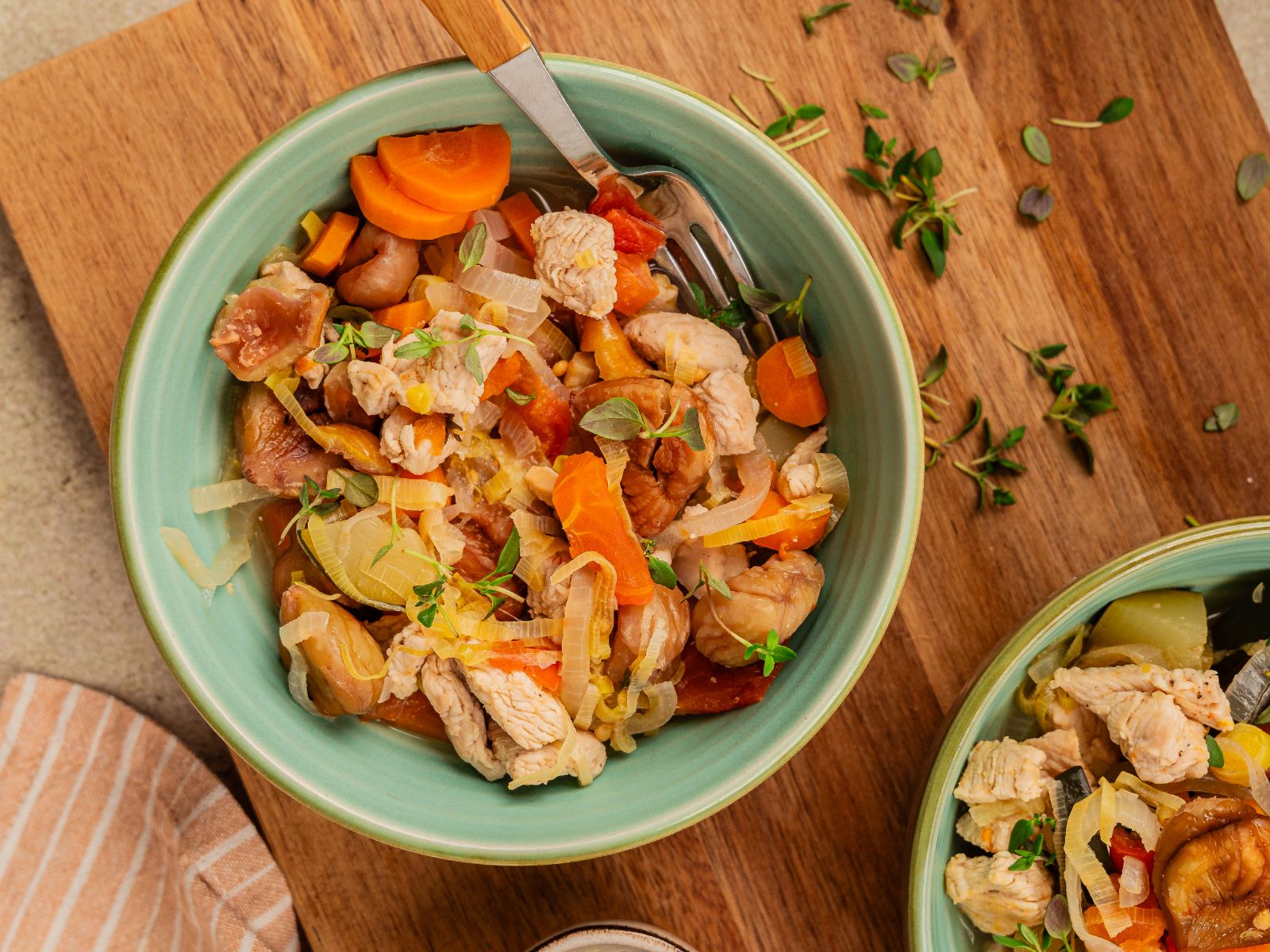 • Em paus de espetada, alterne cubos de peru e bacon com triângulos de ananás.