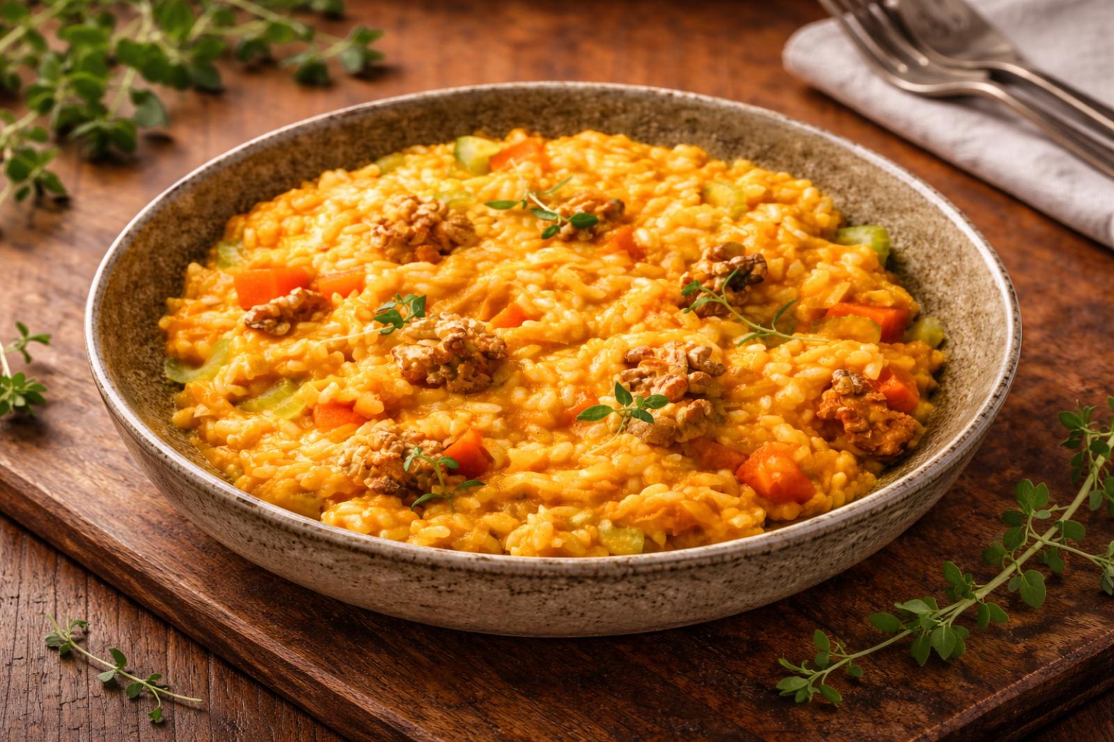 Sirva o estufado de legumes e castanhas e decore com orégãos frescos.