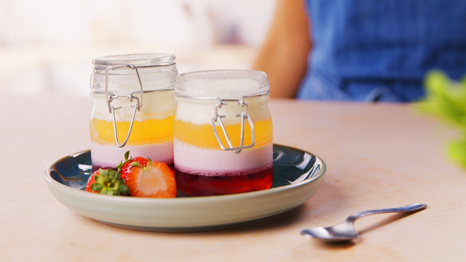 Adicione o iogurte, a proteína whey, agave ou mel e stevia (opcional), envolva os ingredientes com a espátula e programe 15 segundos na velocidade 10. Com a espátula, faça descer o que se acumulou nas paredes e tampa do copo. Verifique se a fruta ficou bem triturada e, se necessário, repita a operação.