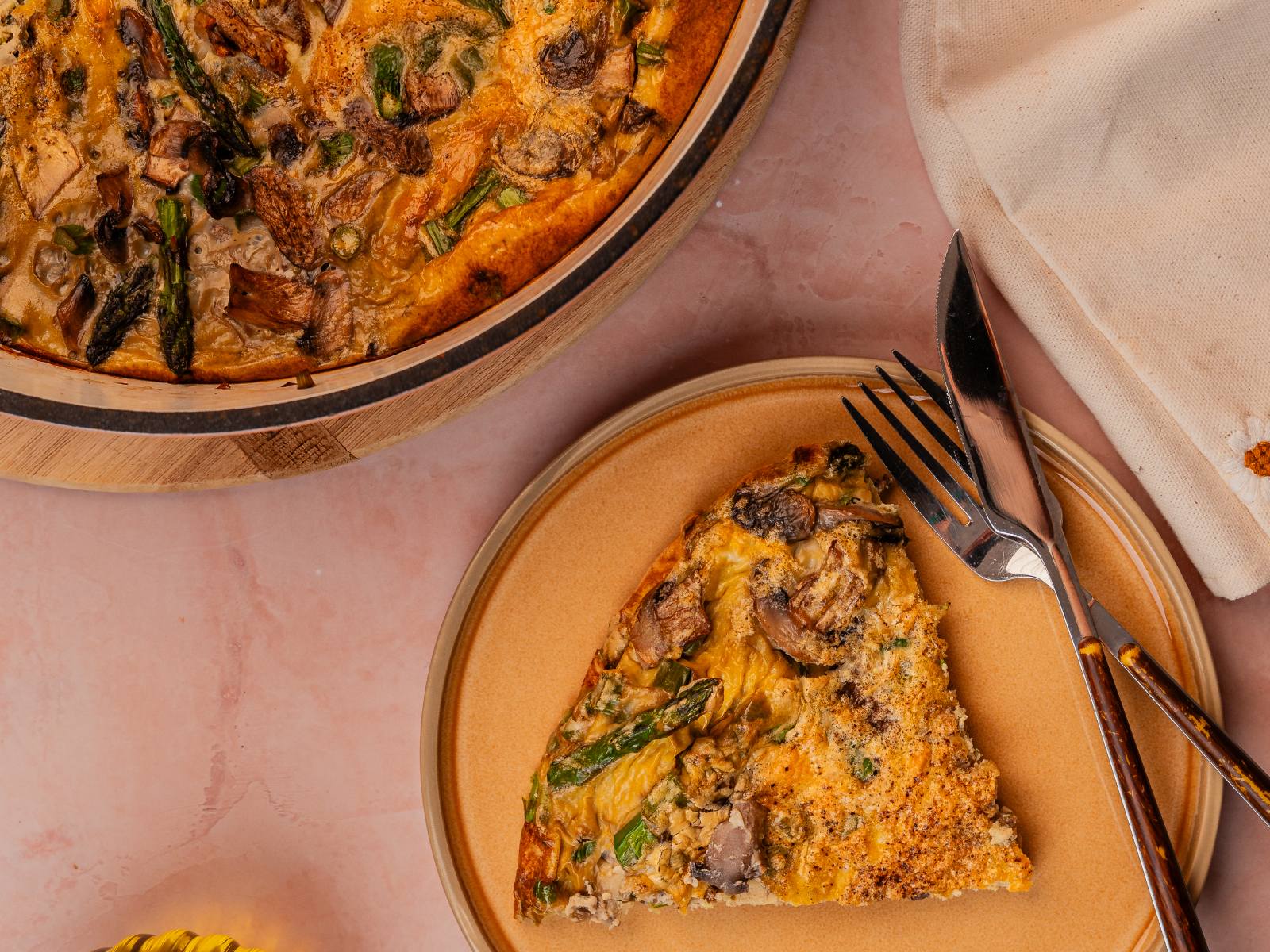 Transfira a frigideira para o forno pré-aquecido a 180ºC e deixe cozinhar até os ovos estarem completamente prontos.