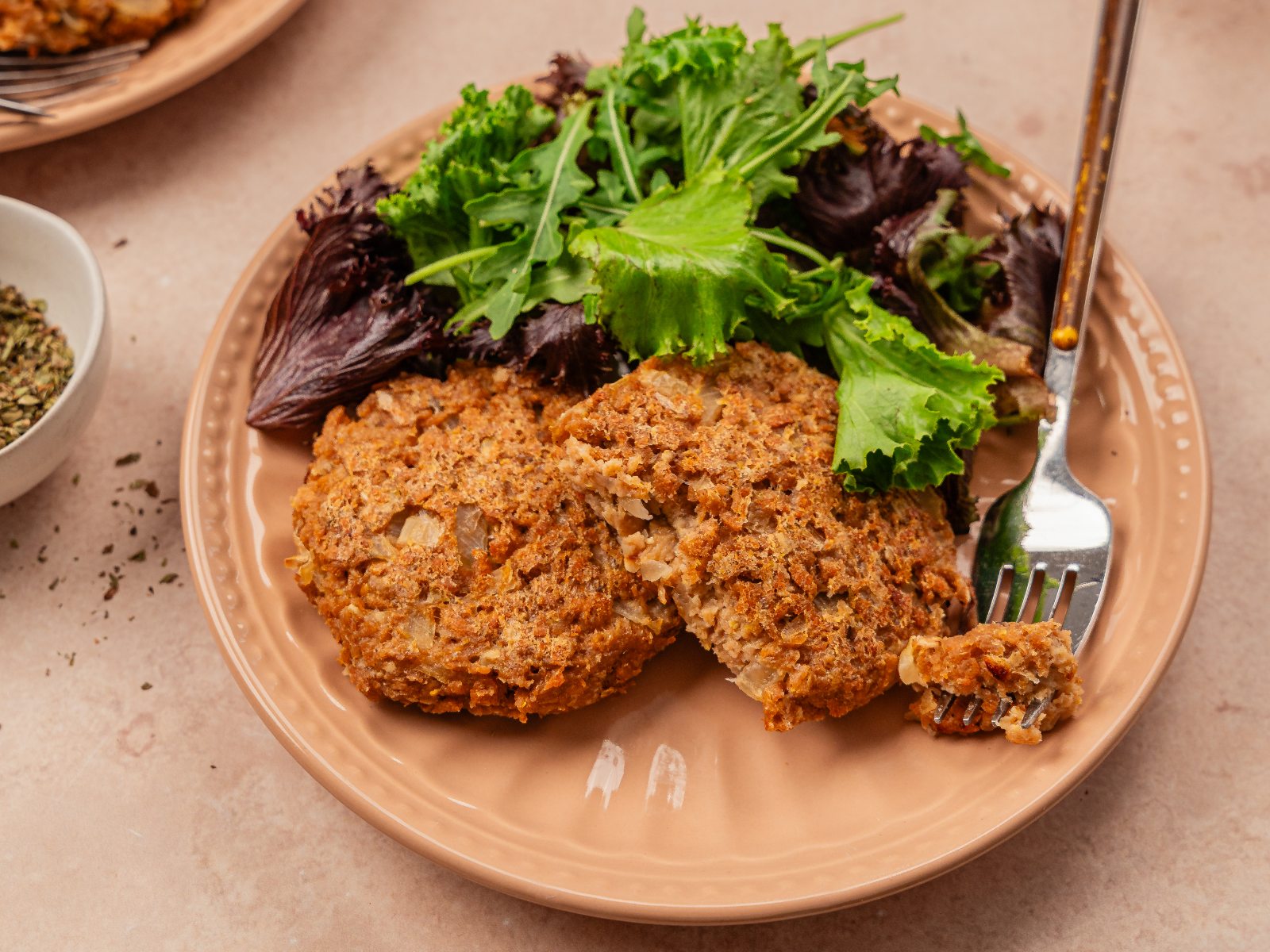 Moldar os hambúrgueres de soja e dispor num tabuleiro. Levar ao forno a 180ºC por 20 minutos.