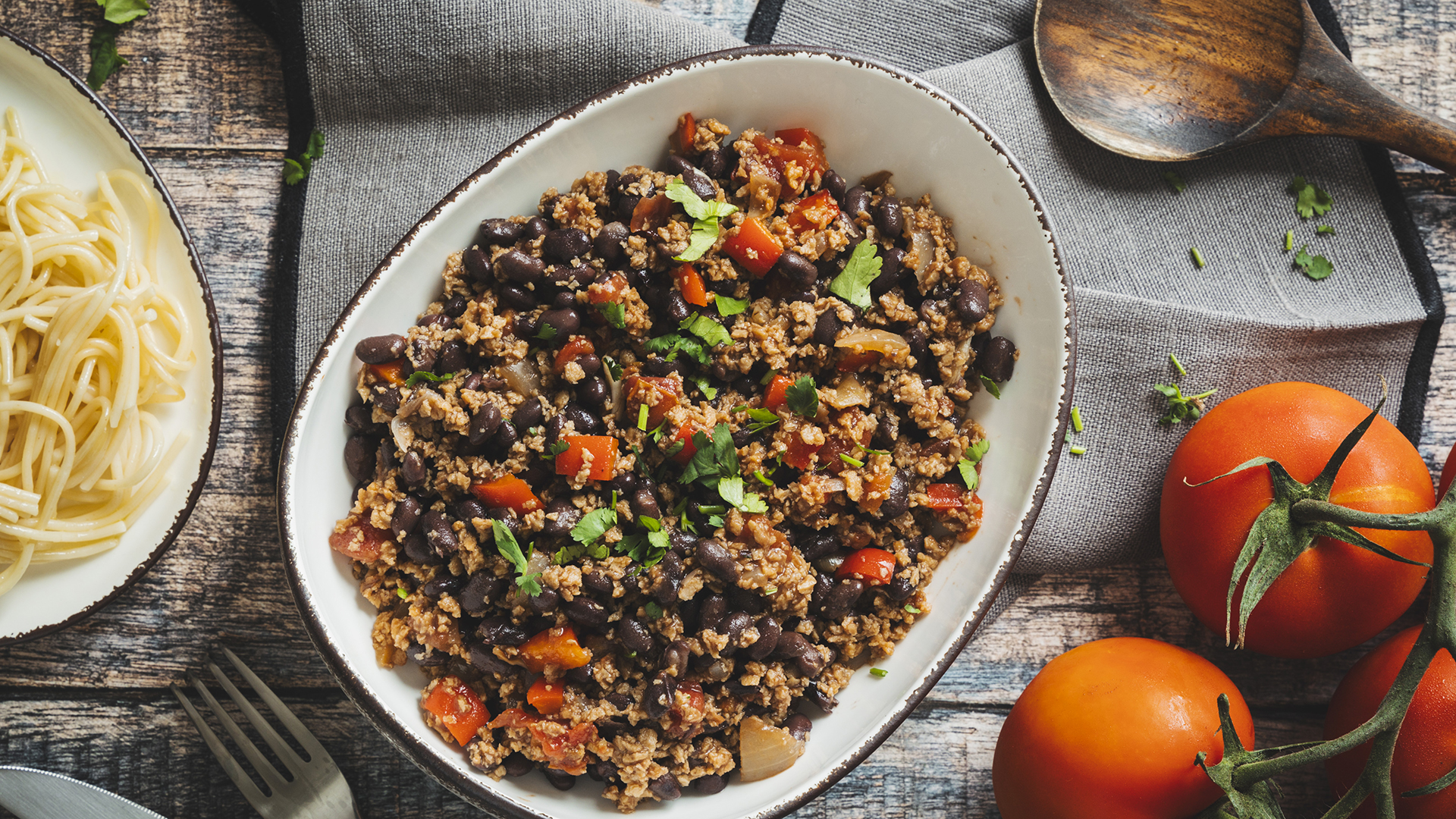 Juntar a soja hidratada e escorrida, o molho de soja, temperar com sal e pimenta, orégãos, cominhos, mexer por 3 a 5 minutos.