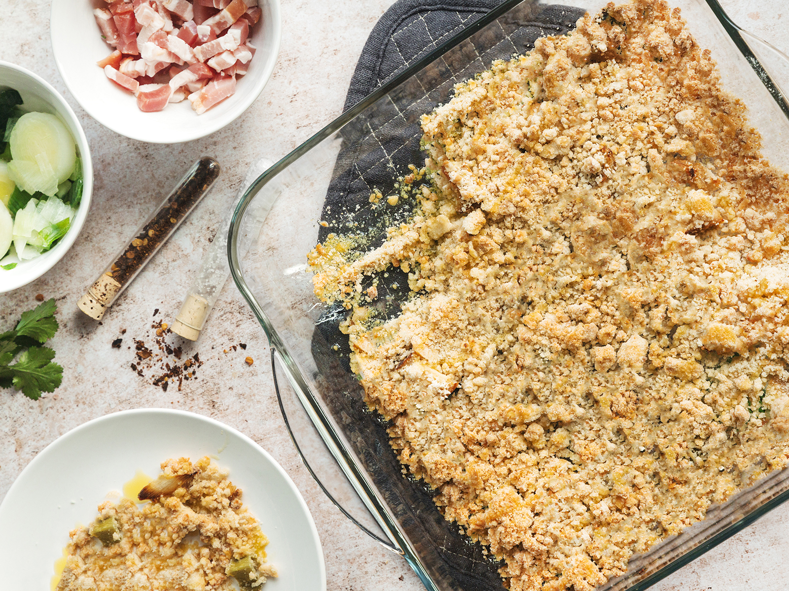 Num tacho ou wok, refogue a cebola cortada em meias-luas num fio de azeite até estar bem tenra.