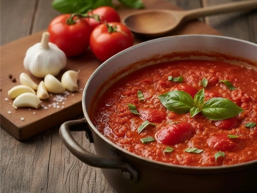 2.De seguida, adicione o tomate fresco sem casca e sementes e uma embalagem de tomate pelado.