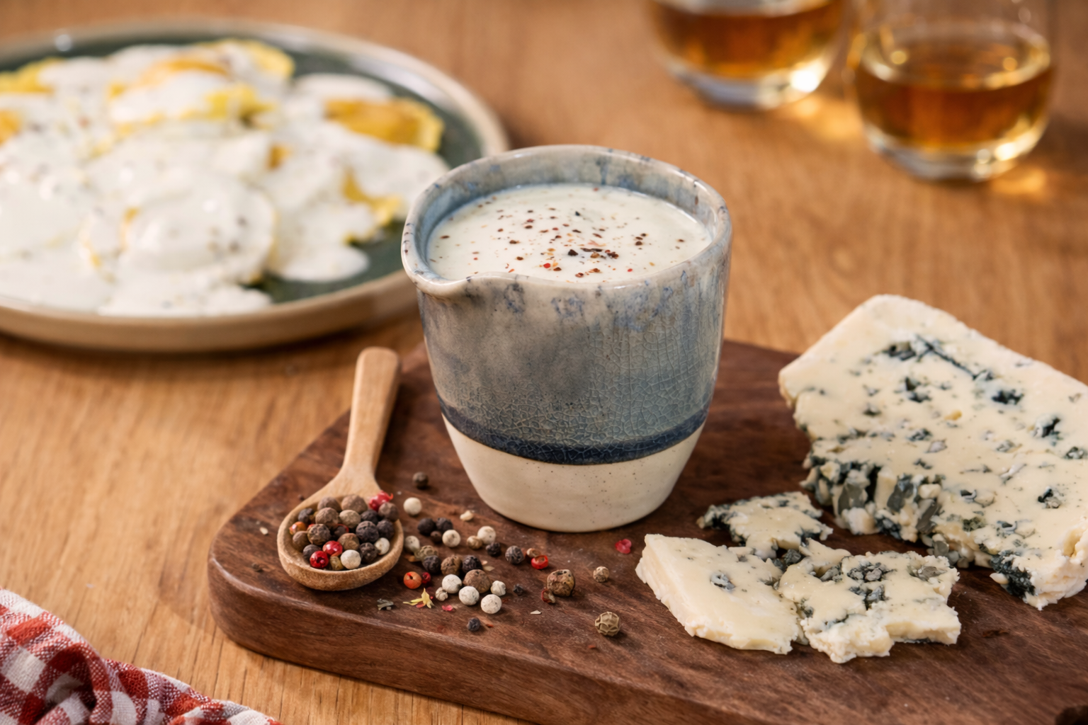 O molho roquefort, intenso, cremoso e cheio de carácter, é ideal para dar um toque sofisticado a carnes, massas ou legumes, elevando qualquer prato com o seu sabor marcante.