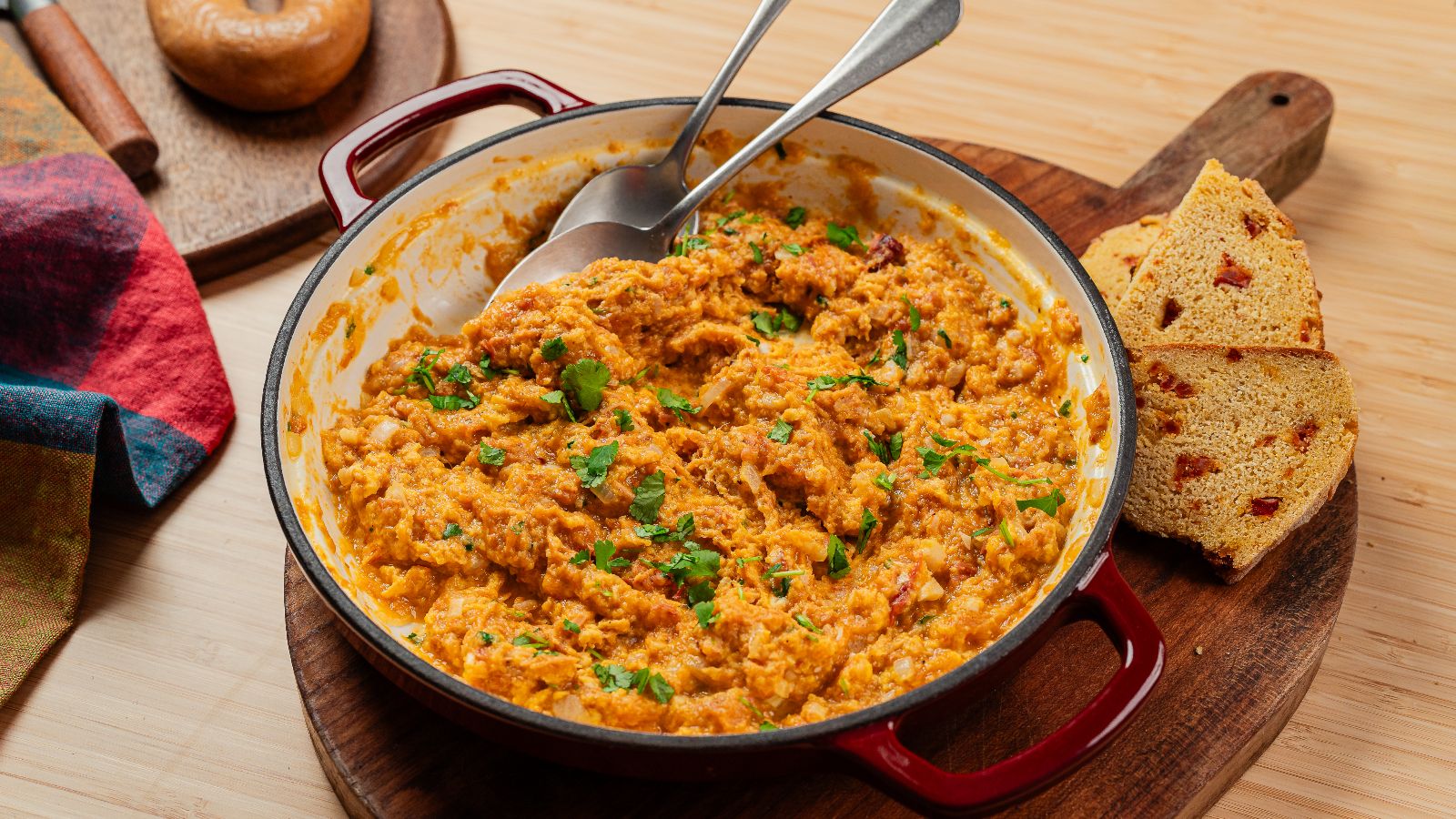 Servir a omelete e acompanhar com fatias de abacate e decorar com coentros.