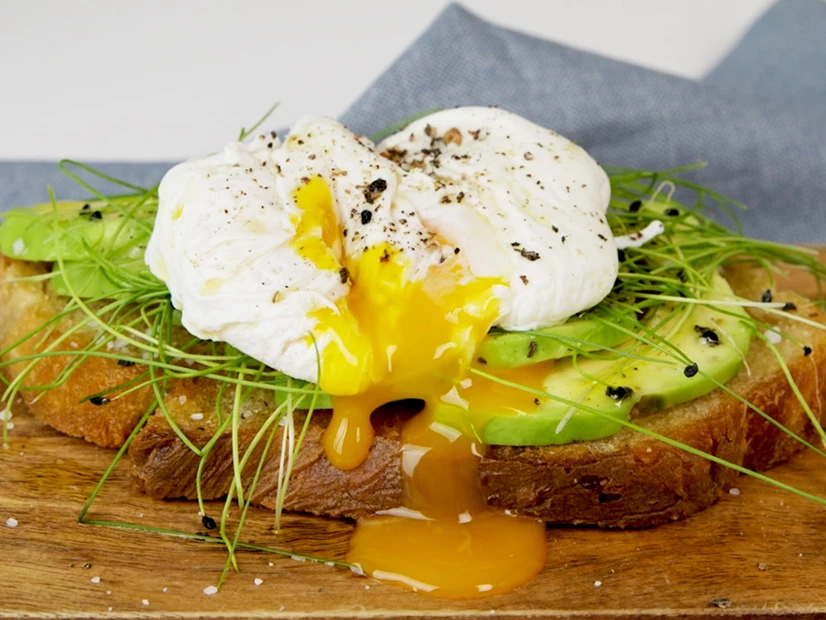 3.Com a ajuda de uma colher, crie um remoinho no centro da água e verta o ovo para o centro do remoinho.
