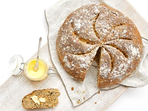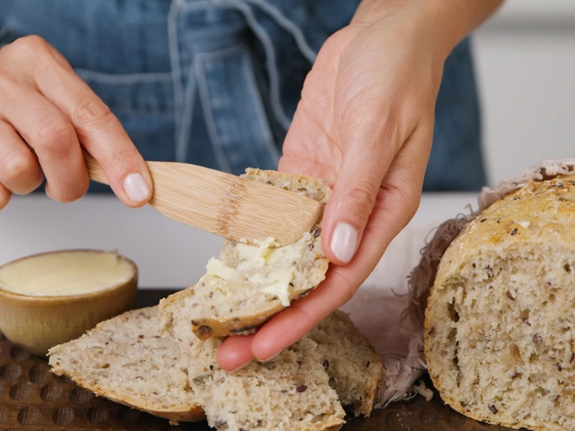 Colocar as farinhas e as sementes numa taça, juntar a água e envolver tudo com uma colher até que a farinha absorva toda a água (não é preciso amassar).