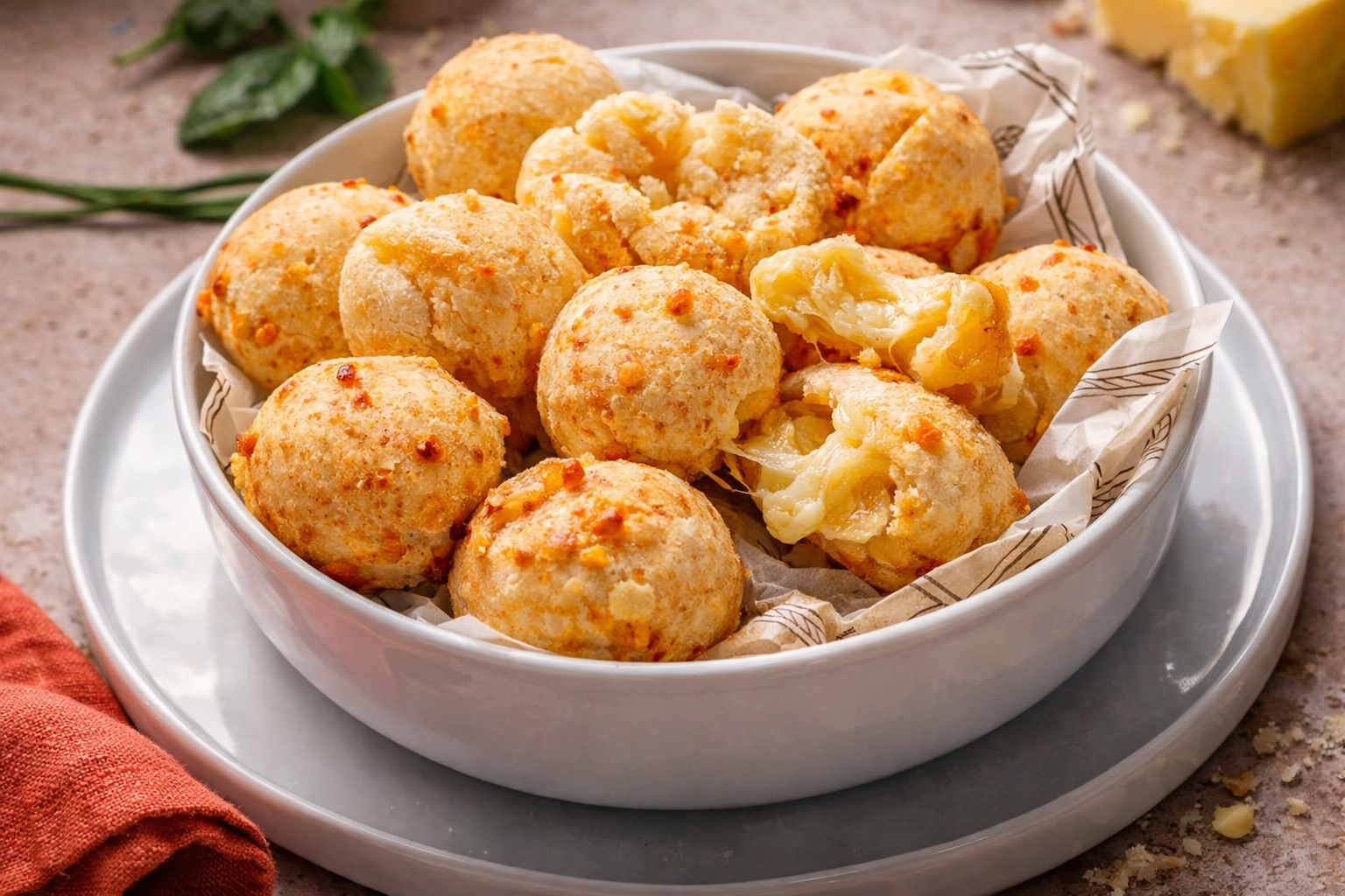 Dividir a massa em porções do mesmo tamanho (cerca de 30g cada porção) e formar bolinhas. Dispor num tabuleiro forrado com papel vegetal e levar ao forno a 180ºC por 12 a 15 minutos até os pãezinhos ficarem dourados. Servir de imediato.