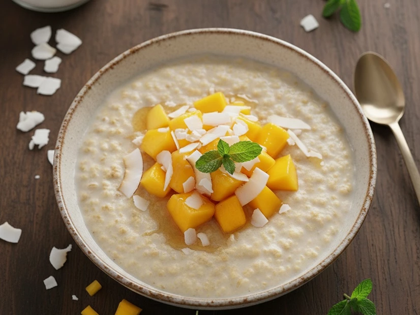 As Papas de Aveia e Coco com Manga são um pequeno-almoço saudável, cremoso e cheio de sabor tropical. Rápidas de preparar, combinam a suavidade da aveia com a doçura da manga e o aroma do coco.