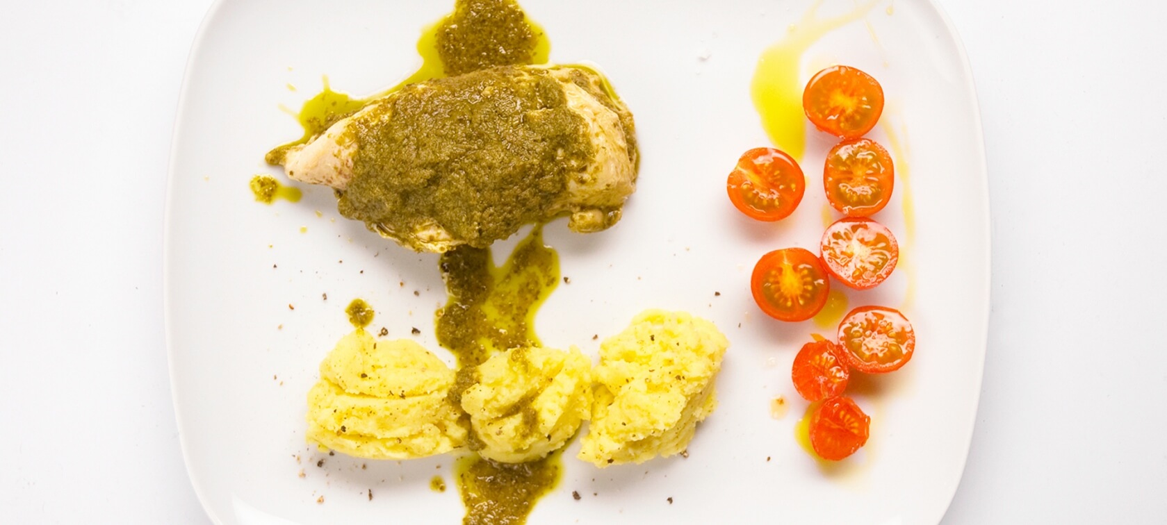 Comece por colocar os peitos de frango a marinar. Num tabuleiro coloque os peitos de frango e tempere com sal, pimenta, a raspa e o sumo do limão, a noz moscada, o pimentão doce, o alho em pó e um fio de azeite. Envolva bem os peitos de frango no molho para que fique espalhado de forma homogénea. Deixe marinar durante cerca de 30 minutos.