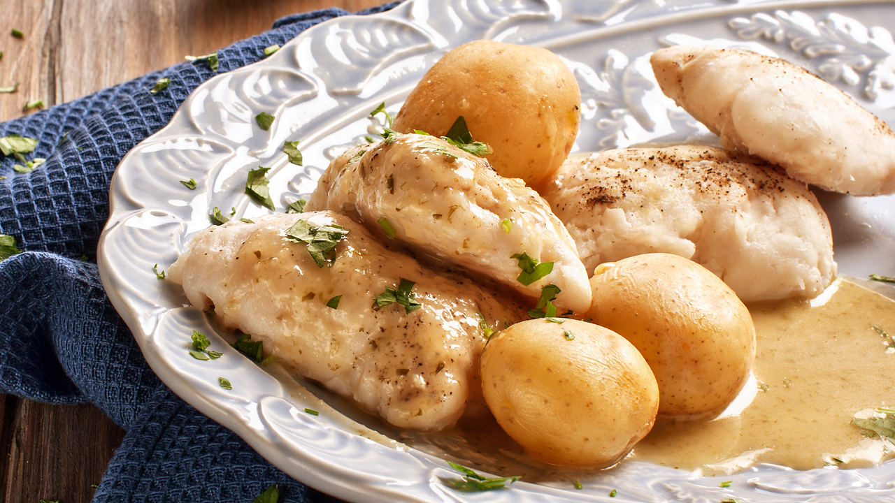 Coloque as postas de robalo numa taça e tempere com sal e pimenta e regue com sumo de 1/2 limão, envolva bem e deixe marinar por 15 minutos.