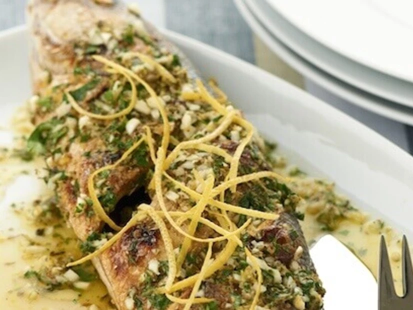 Um peixe preparado de forma deliciosa.