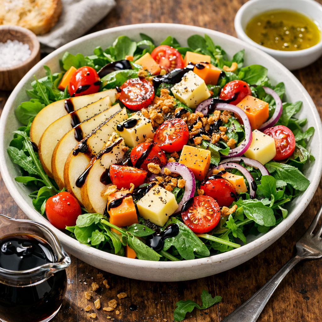 Noutra tigela, misture com a ajuda de um batedor de varas o vinagre, a mostarda e as ervas. Acrescente o azeite em fio, até a mistura ficar bem emulsionada. Tempere de sal e pimenta.