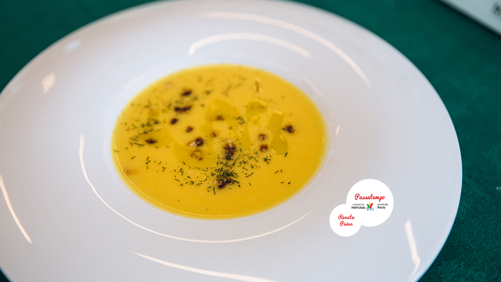 Num tacho, coloque um fio de azeite e refogue a cebola laminada e o alho picado.