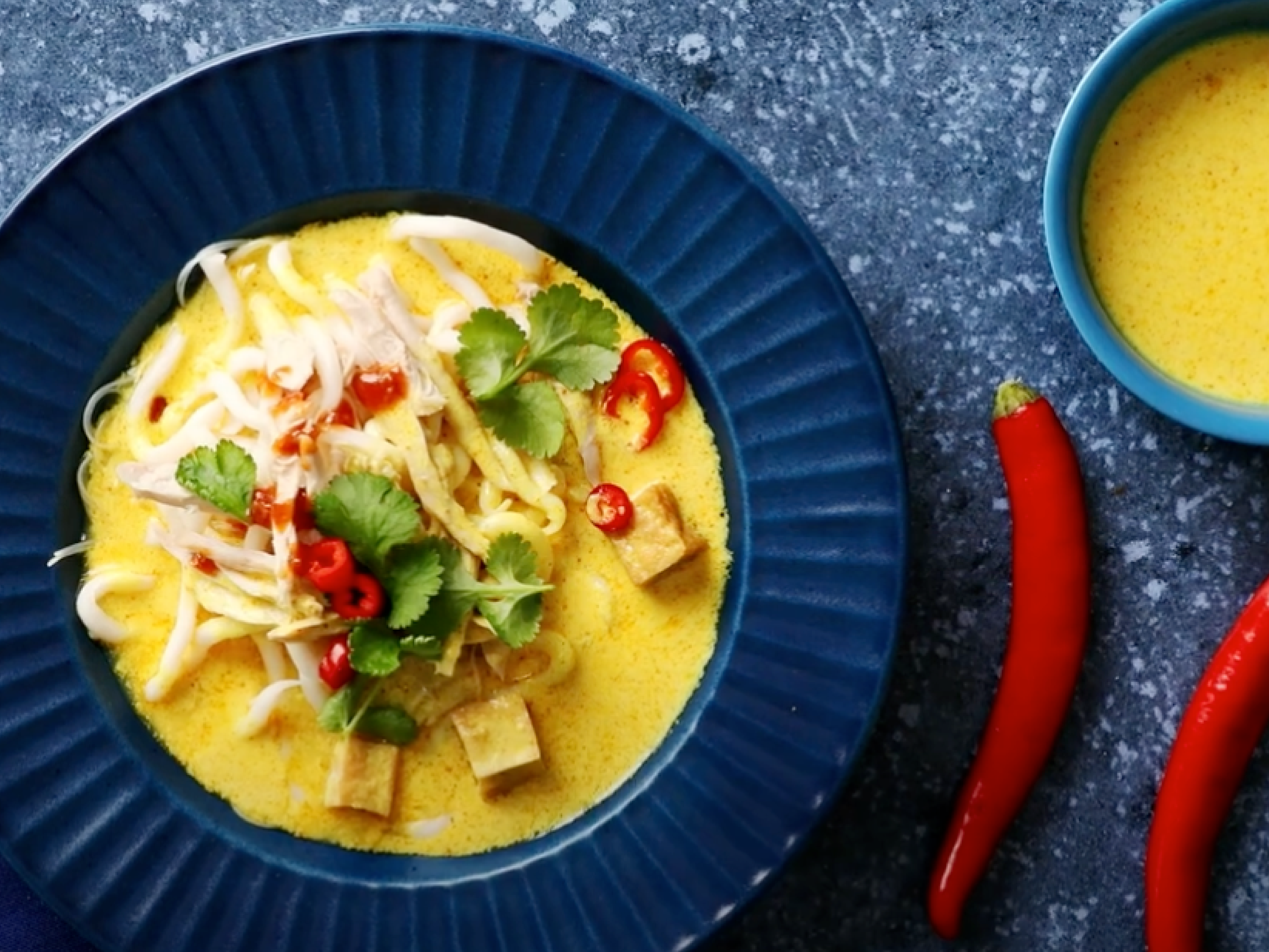 Sirva a sopa de castanha e decore com natas culinária e pimenta.