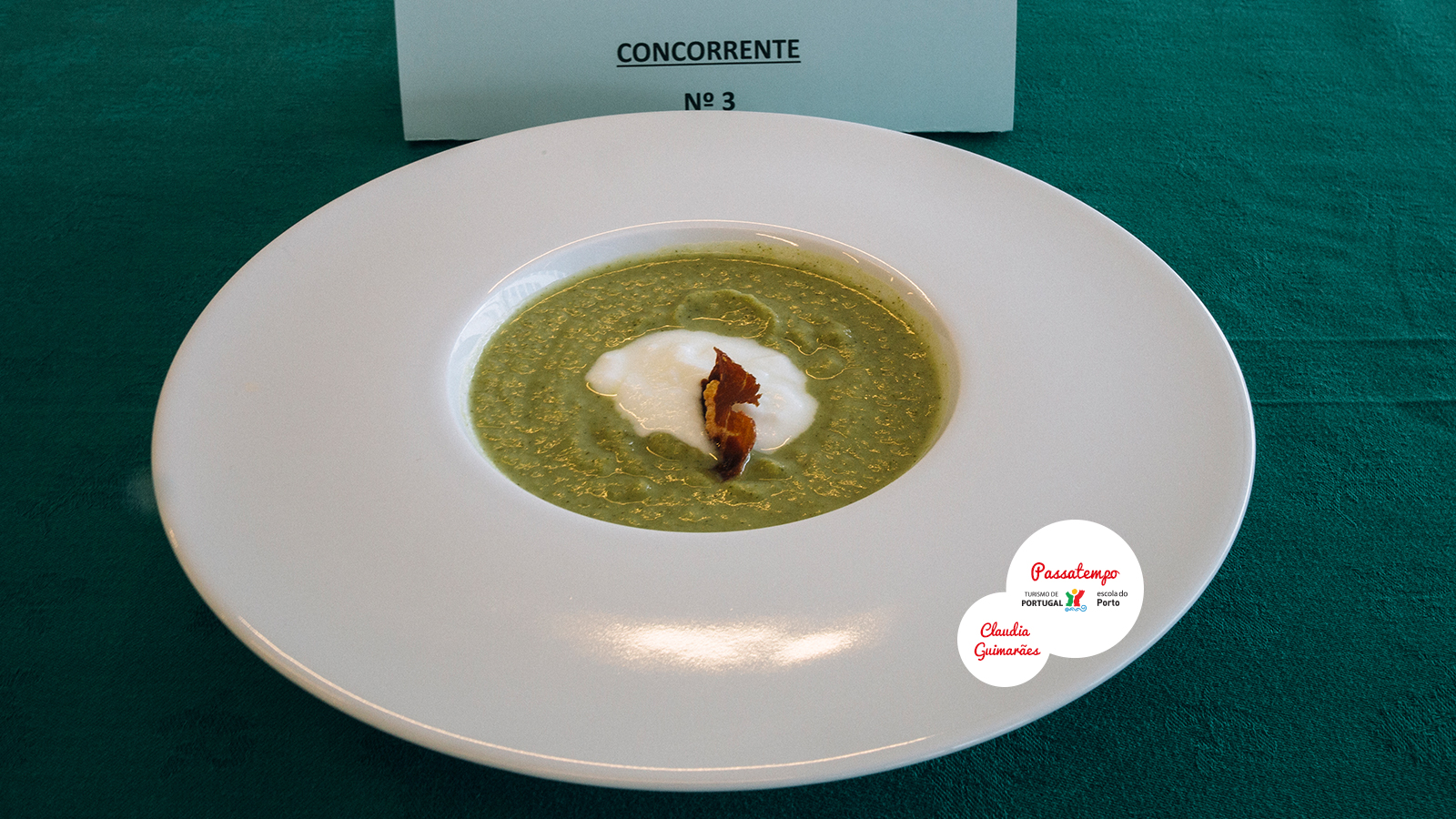 Servir a sopa de legumes e decorar com um fio de azeite.