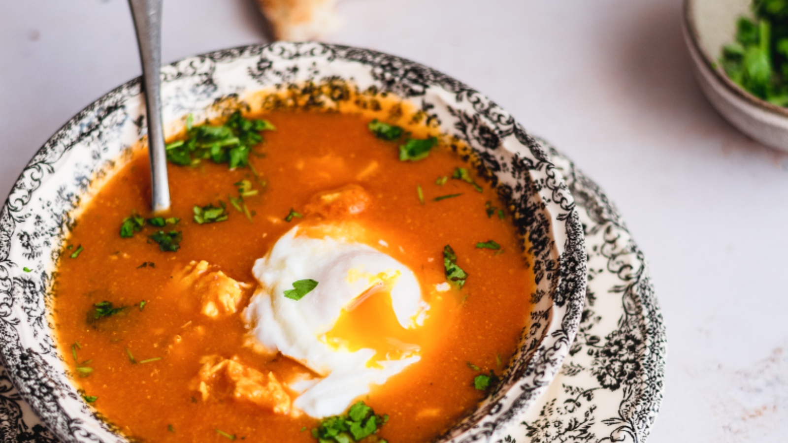 Deixe cozinhar até o peixe ficar tenro. Sirva cada dose com 1 ovo escalfado e salsa picada por cima.