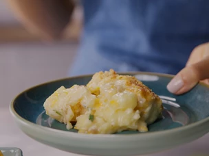 Comece por cozer o bacalhau até que este possa lascar-se.