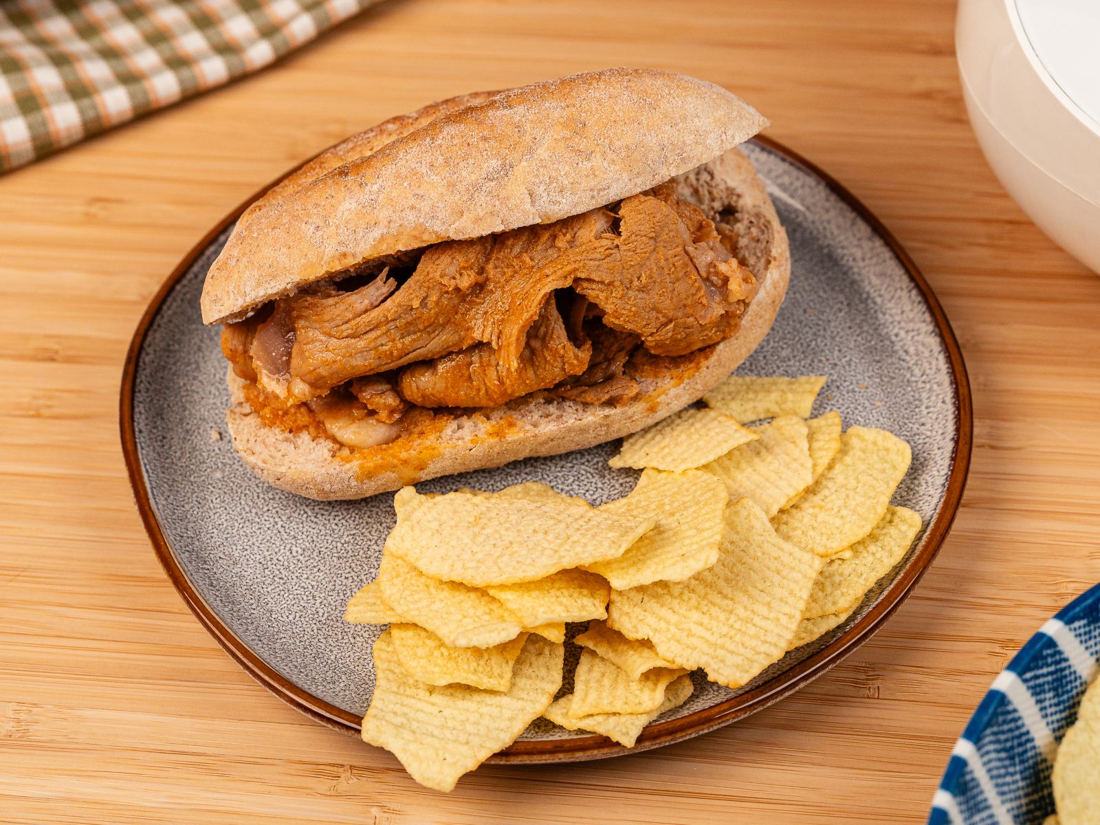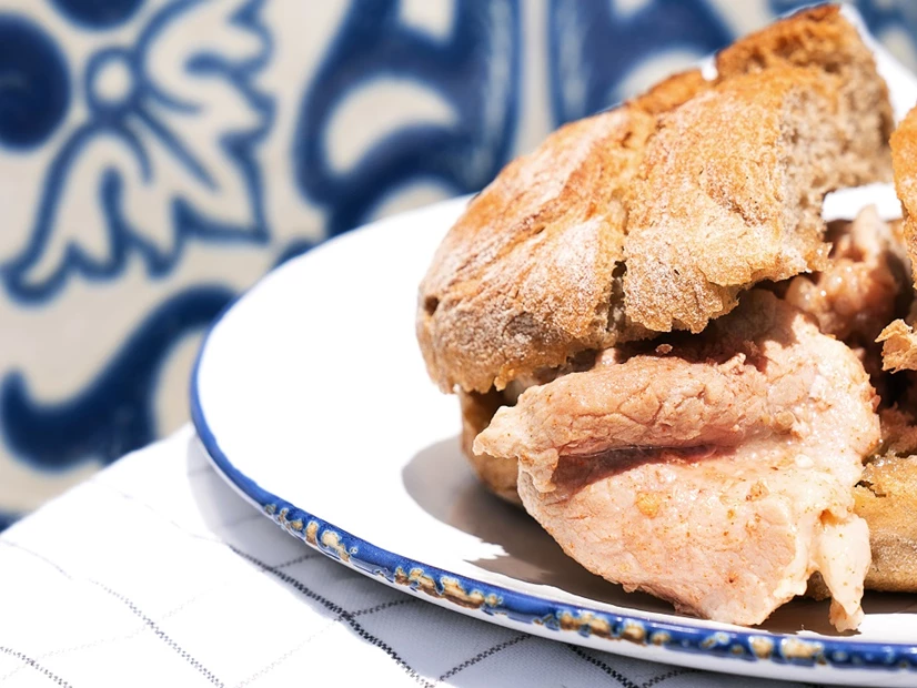 Sirva as bifanas regadas com molho no pão ou acompanhadas por batatas fritas.