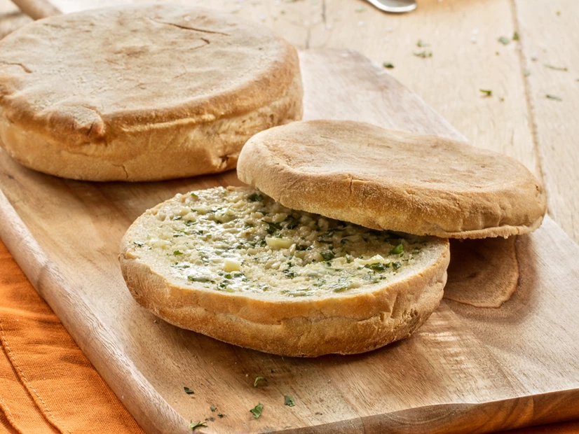 Divida a massa em 6 partes iguais e molde-as em forma de bola. Achate-as bem e polvilhe com um pouco de farinha de ambos os lados. Se a massa se colar às mãos ou à superfície de trabalho, polvilhe com um pouco de farinha.