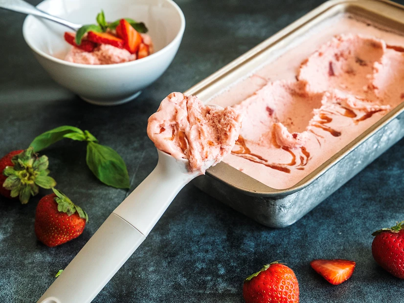 O Gelado Proteico de Morango e Manjericão Yämmi XL, a fusão perfeita entre o sabor doce do morango e o aroma fresco do manjericão. Com a Yämmi, transforme ingredientes simples num gelado cremoso, leve e cheio de proteína — ideal para os dias quentes ou como snack saudável.