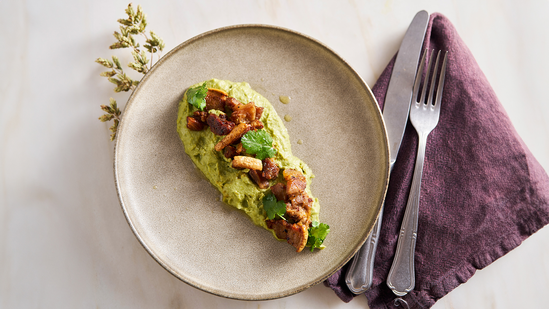 Para o molho, coloque a cebola cortada no copo e pressione a Função Triturar. Com a espátula, faça descer o que se acumulou nas paredes do copo. Junte os restantes ingredientes do molho e programe 30 minutos a 120ºC na velocidade 1. De seguida, triture durante 10 segundos velocidade 7. Retire do copo e deixe arrefecer