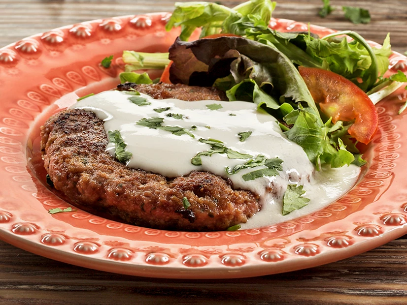 Forme bolas de 150 gramas cada uma. Unte as mãos com azeite para modelar os hambúrgueres e frite-os ou grelhe-os de ambos os lados.