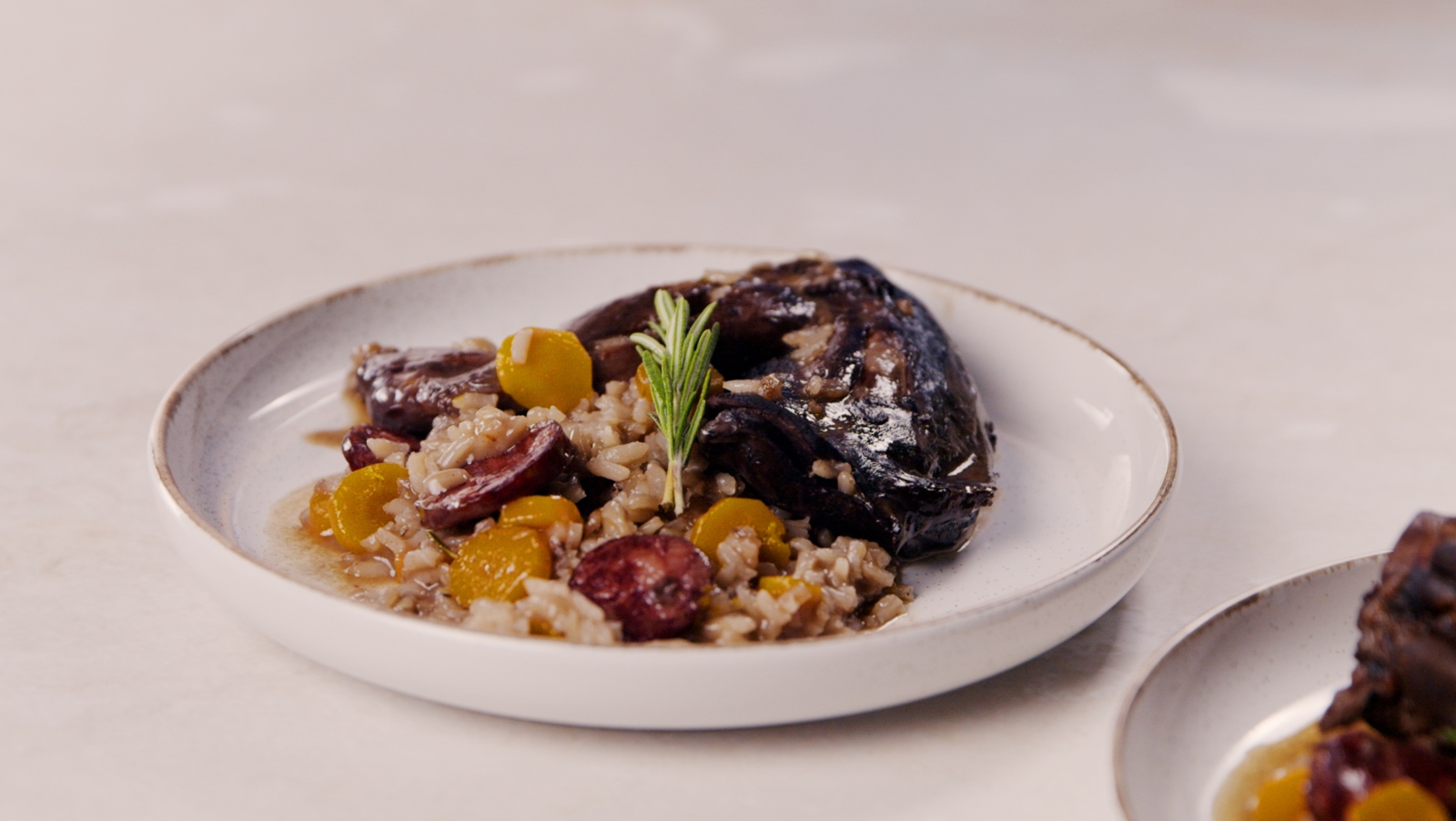 Acrescente os restantes ingredientes e programe 30 segundos com a Rotação Inversa,na velocidade 7. Com a espátula, solte a carne que ficou presa no fundo da panela e programe mais 20 segundos com a Rotação Inversa na velocidade 8 (enquanto a máquina funciona, ajude a misturar os ingredientes, inserindo a espátula pelo orifício da tampa).