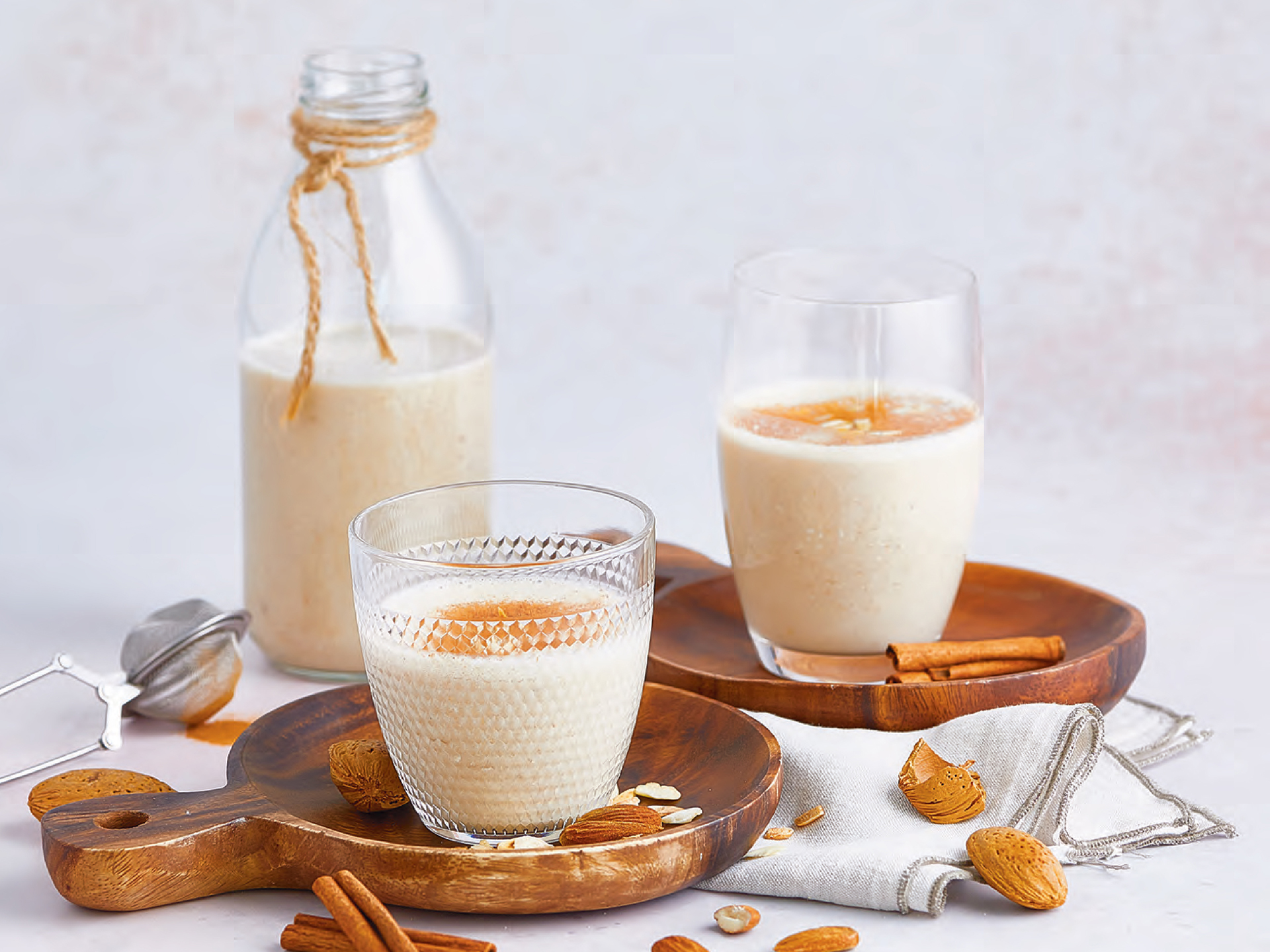 Junte o leite, a proteína whey, o miolo de noz e folhas de hortelã a gosto. Envolva com a espátula até ao fundo do copo e programe 1 minuto na velocidade 11.